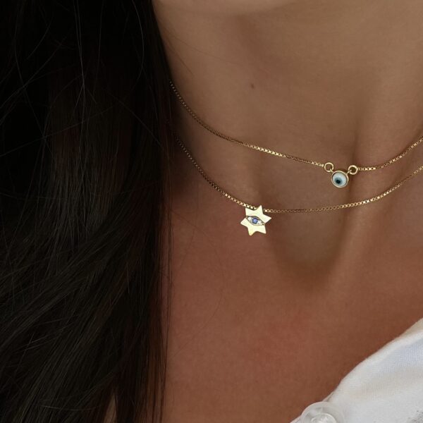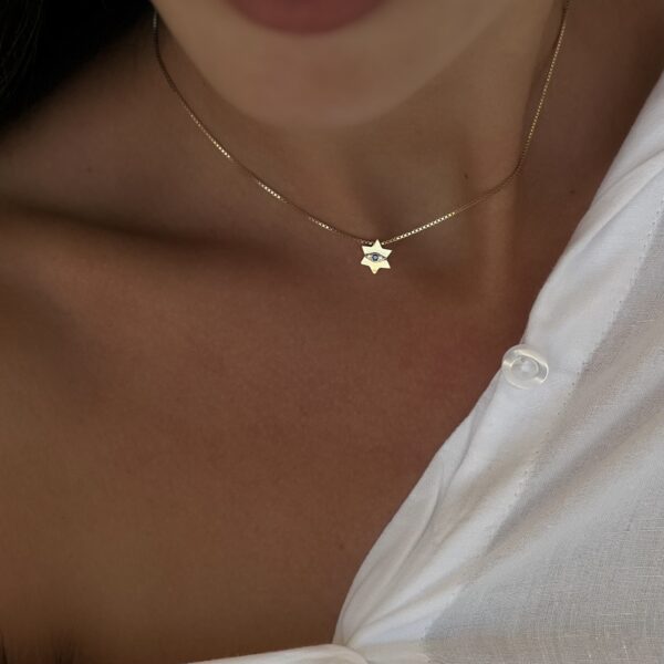 שרשרת מגן דוד עין שיבוץ יהלומים ואבן ספיר | מהדורה מוגבלת